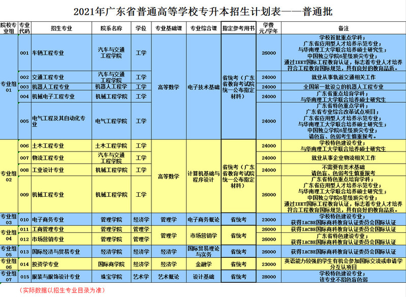 华南理工大学广州学院2021年普通高校专升本拟招生专业15个,根据《广东省2021年普通高等学校专升本招生工作规定》制定本简章。