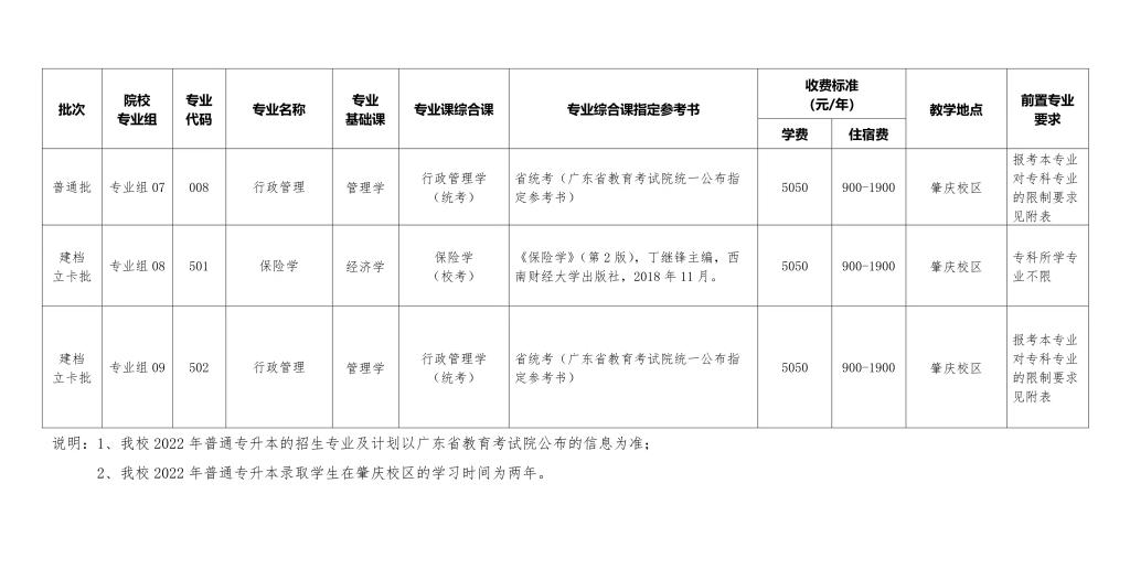 (四)我校2022年普通专升本录取学生在肇庆校区的学习时间为两年。