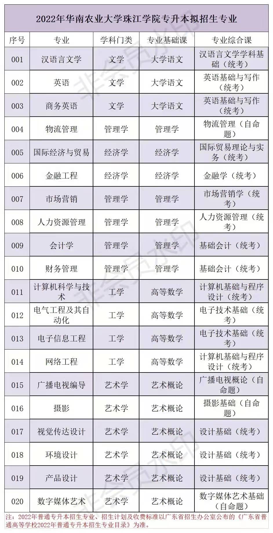 4.广东省2022年普通高等学校专升本拟招生专业 与公共课和专业基础课对应表